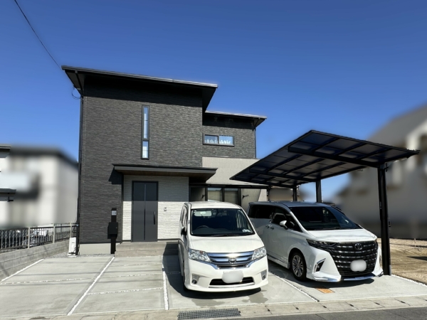 落ち着いた色合いの目隠しフェンスは土新建材のエコモックフェンスを採用。植栽とぐり石の自然な配置が美しいロックガーデンは、モダンでありながら心安らぐプライベート空間を演出してくれます。