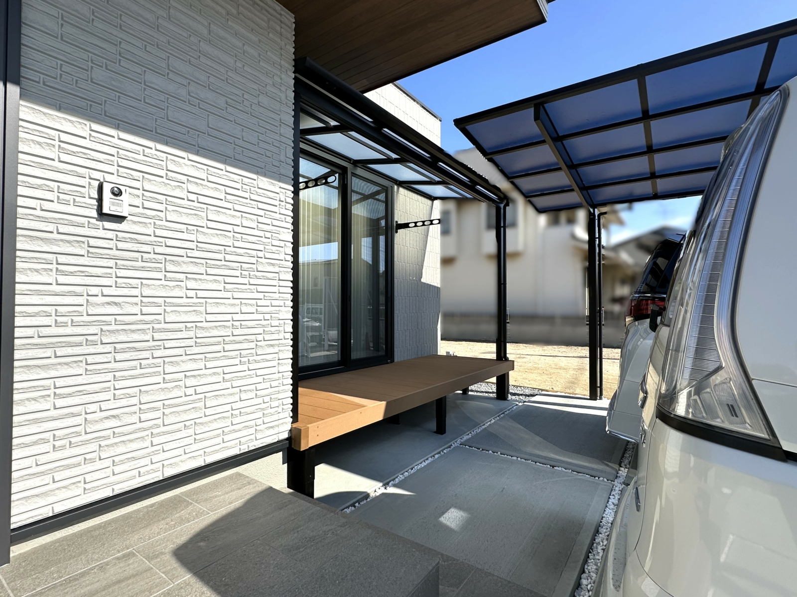 奥行延長したカーポートによって、雨の日でも快適にトランクを使用できる設計にしました。